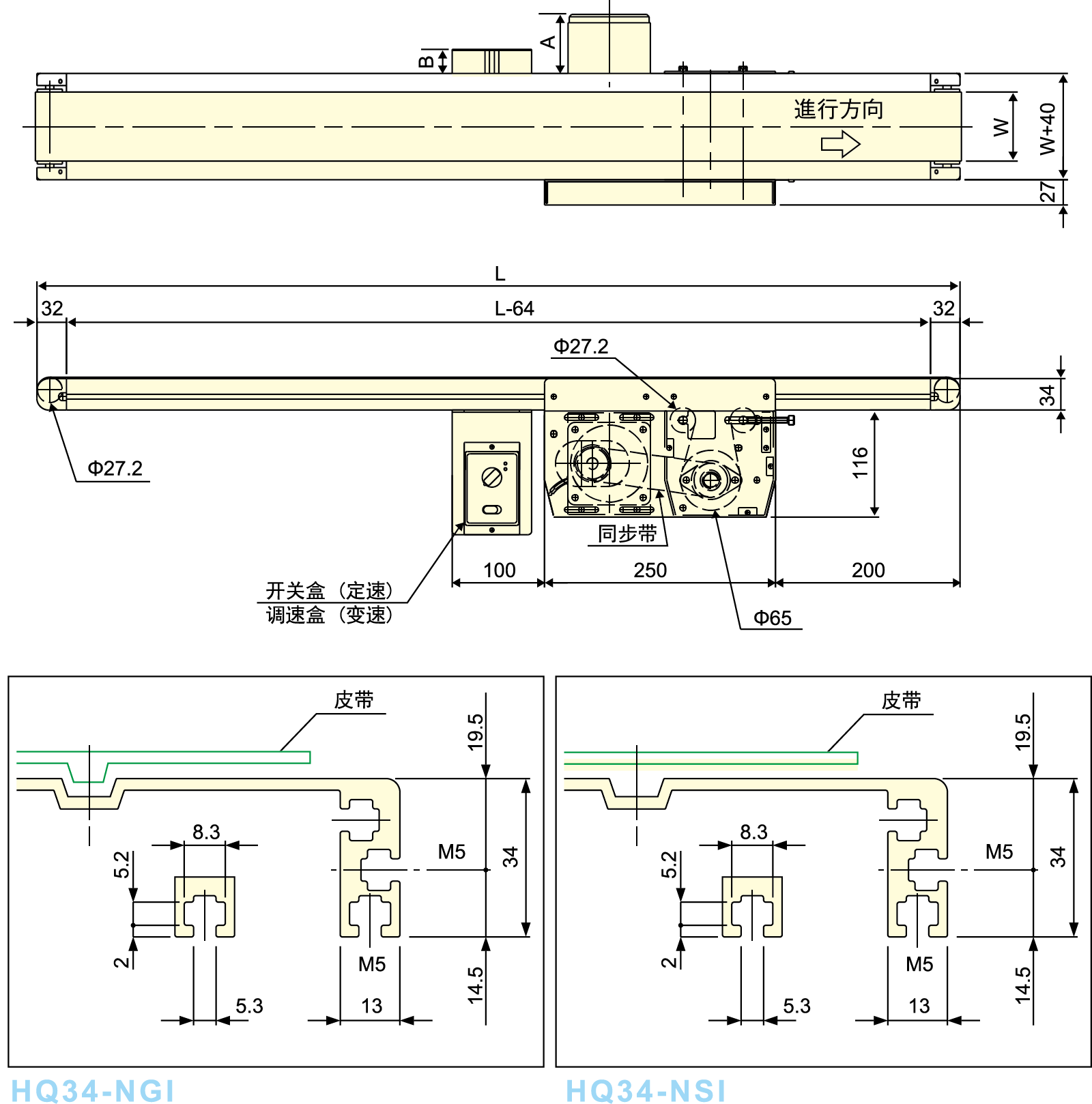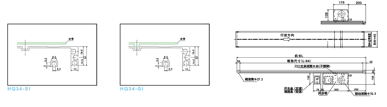 SI Standard Type ● Dit is standaardtype van 34 mm riemtransporteur, het rij -centrum wordt verplaatst ...
