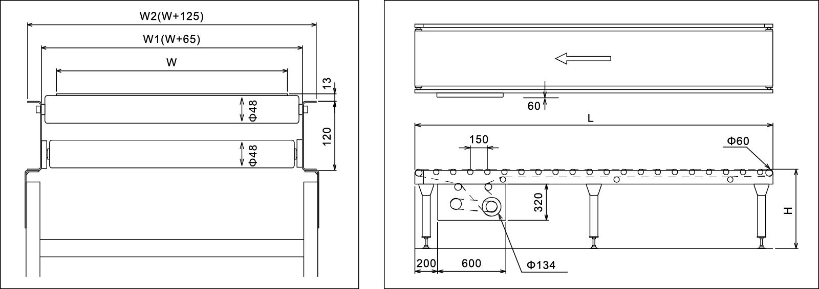 | Lengte | L (mm) | 1200 ~ 20000 | 4000 ~ 15000 | 1200 ~ 25000 | 4000 ~ 20000 |