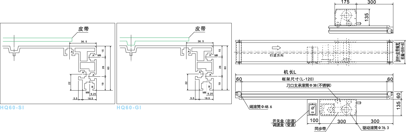 De werkelijke dimensie van de riem wordt 5 mm versmald dan een mislukte standaardriem; LF De lengte van de machine overschrijdt 4m vernauwde 10 mm.