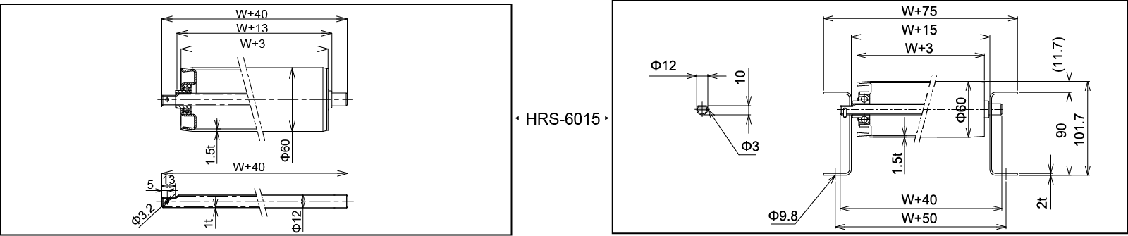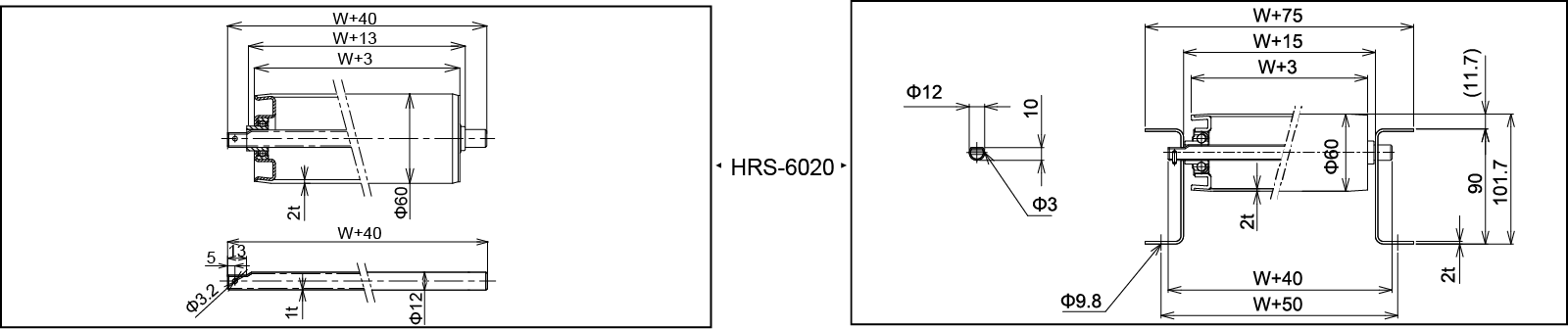 | Breedte van Roller W (mm) | 100 | 200 | 300 | 400 | 500 | 600 | |
