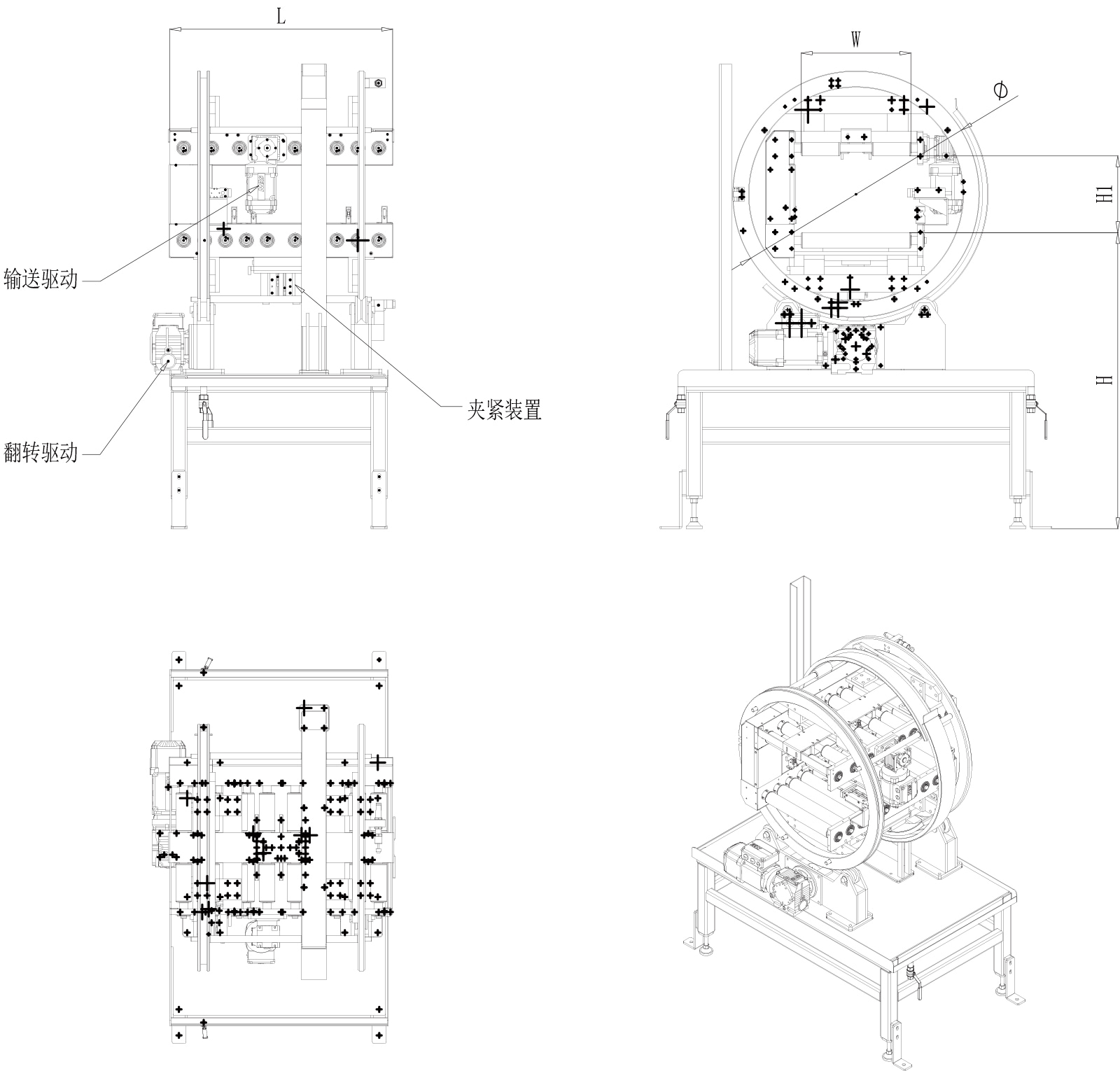 Transportklaaptafels worden over het algemeen op grote schaal gebruikt in assemblagelijnen om de positie van werkstukken om te draaien. Ze zijn meestal uitgerust met op en neer transportbanden, pneumatische/elektrische klemapparaten en 90 graden of 180 graden flipping -apparaten.