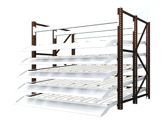 Vloeiende planken worden in het algemeen geconstrueerd met behulp van rollertype aluminiumlegering of plaatstaven met metaal met metaal op medium tot lichte belastingplanken, met vloeiende staven geplaatst op ongeveer 3 graden. De goederen die door vloeiende planken worden gedragen, worden meestal in papier verpakt of in plastic omzetdozen binnen geplaatst, met behulp van hun eigen gewicht om de stroom te bereiken en in goederen, opslag en toegang gemakkelijk maken. Het laadvermogen van de eenheid van vloeiende planken is meestal ongeveer 100 kg per laag en de plankhoogte is binnen 2,5 meter. Vloeiende planken zijn geschikt voor procesconversie aan beide zijden van assemblagelijnen, assemblagelijnproductie en pickactiviteiten in distributiecentra. Ze kunnen worden uitgerust met elektronische tags om informatiebeheer van goederen te bereiken. Op grote schaal gebruikt in industrieën zoals automotive, farmaceutische, chemische en elektronica.