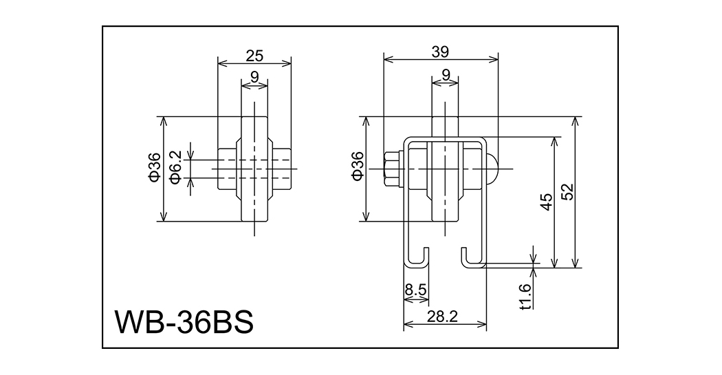 | WB-36BS | 36x9x6.2x25 | M6X35L | 45x28.2x8.5x39x1.6 | 52 | 1000 · 2000 · 3000 | 50 · 75 · 100 | 40 | E |