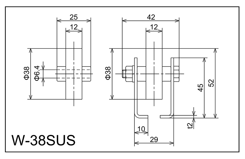 | W-38SUS | 38x12x6.4x25 | M6X38L | 45x29x10x42x2.0 | 52 | 1800 · 2400 · 3000 | 50 · 75 · 100 · 150 | 20 | A |