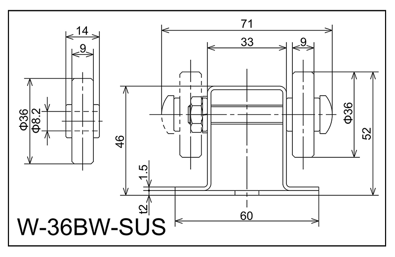 | W-36BW-SUS | 36x9x8.2x14 | M8X55L | 46x60x33 × 71 1.5 2.0 | 52 | 1800 · 2400 · 3000 | 50 · 75 · 100 · 150 | 40 | K |