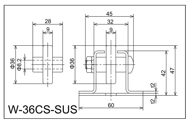| W-36CS-SUS | 36x9x8.2x28 | M8X40L | 42x60x32x45x2.0 | 47 | 1800 · 2400 · 3000 | 50.75 · 100 · 150 | 40 | J |