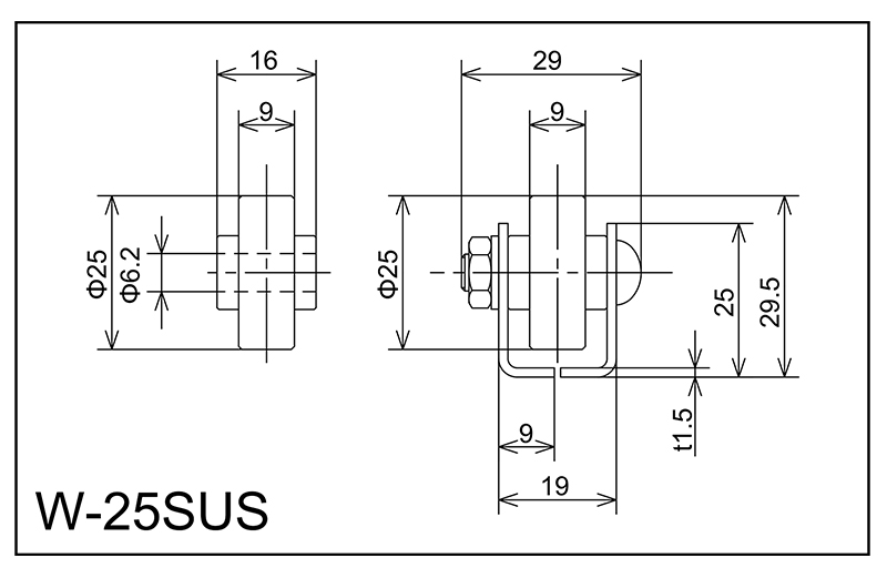 | W-25SUS | 25x9x6.2x16 | M6X25L | 25x19x9x29x1.5 | 29.5 | 1000 · 1500 · 2000 | 30 · 35 | 30 | A |