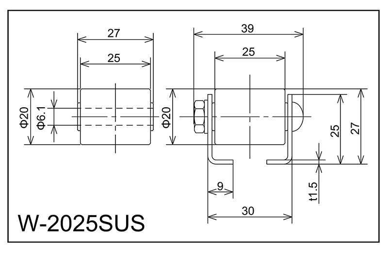 | W-2025SUS | 20x25x6.1x27 | M6X35L | 25x30x9x39x1.5 | 27 | 1000 · 1500 · 2000 | 25 · 30 · 35 | 40 | A |